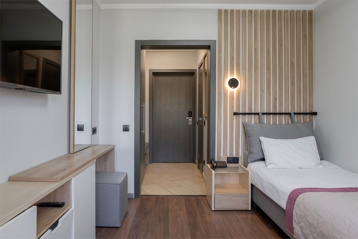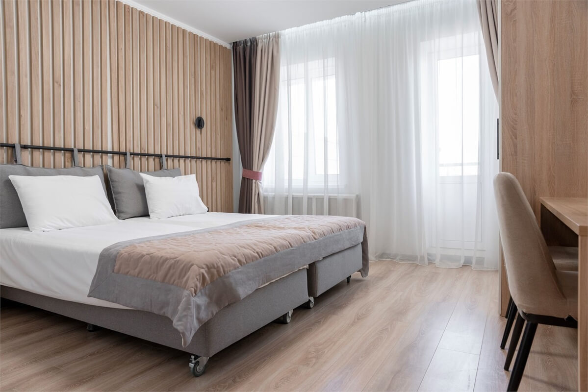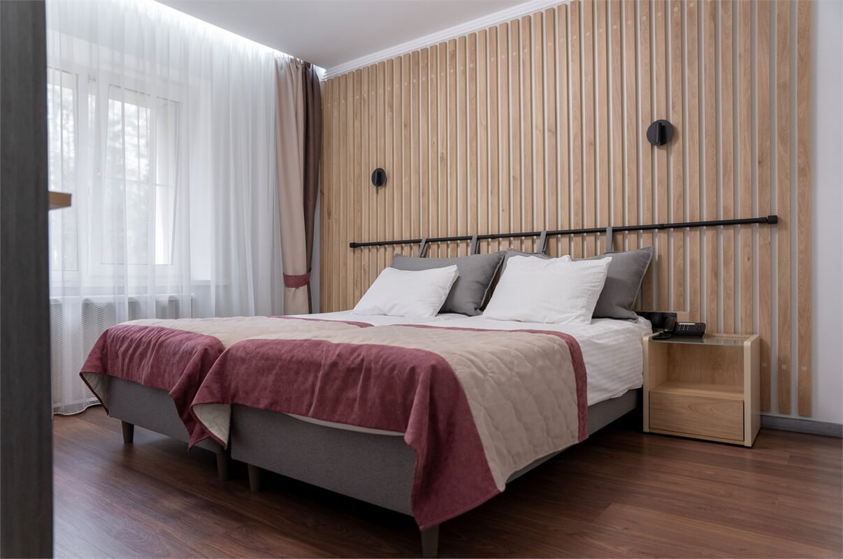 Гостям предлагаются номера различного уровня комфорта, расположенные в пятиэтажном гостиничном корпусе, а также в отдельно стоящих двухэтажных коттеджах и таунхаусах.