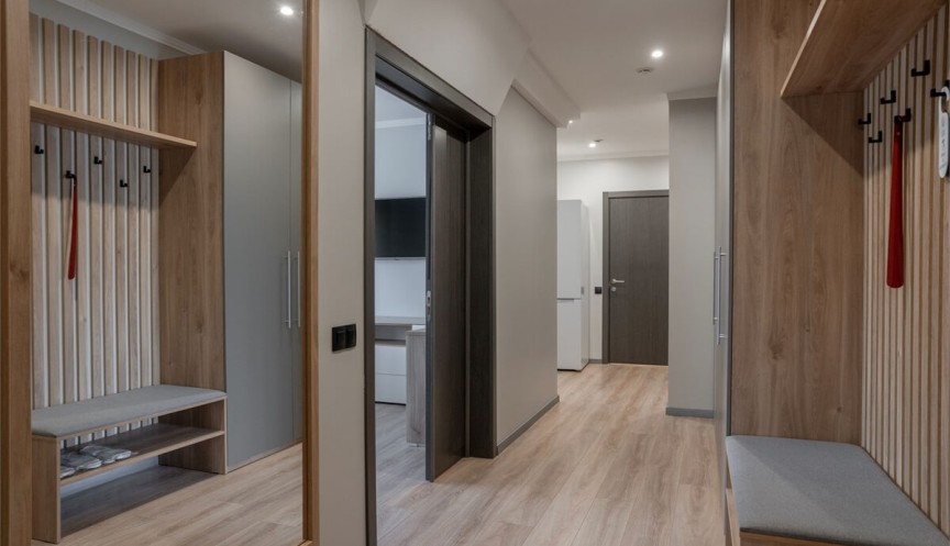 Двухкомнатный номер, включающий гостиную зону и спальную зону.